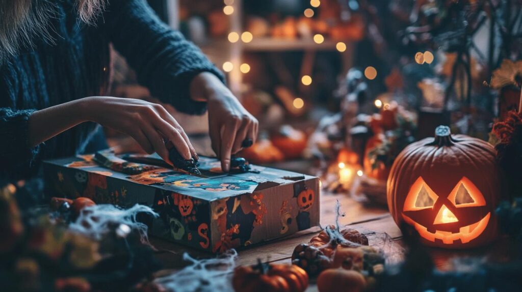 Une fois votre structure de cercueil en carton assemblée, la phase de décoration transforme véritablement votre création en pièce maîtresse pour Halloween. La personnalisation fait toute la différence entre un simple objet en carton et un accessoire de fête qui impressionnera vos invités. Plusieurs techniques sont à votre disposition pour obtenir un rendu à la fois original et authentique.